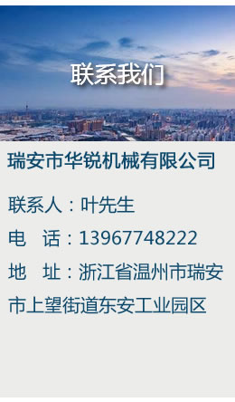 瑞安市華銳機械有限公司的誠信、實力和產(chǎn)品質(zhì)量獲得業(yè)界的認可。歡迎各界朋友蒞臨參觀、指導和業(yè)務(wù)洽談......【查看詳情】